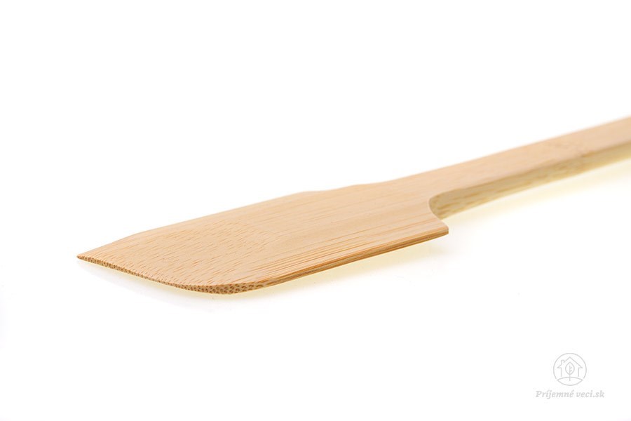 Bambusové drevo je veľmi pevné, tvrdé a odolné, nefarbí sa jedlom. Drevená stierka je príjemnejšia na dotyk ako plast, bez pachute.