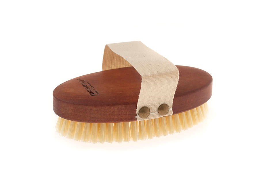 Drevená masážna kefa s pevnejšími štetinami slúži na suchú aj mokrú masáž. V porovnaní s ostatnými kefami z našej ponuky má hrušková kefa s popruhom pevnejšie (tvrdšie) štetiny. Masíruje, prekrví a očistí pokožku na celom tele. Štetiny mierne zmäknú, ak ich namočíte v teplej vode.