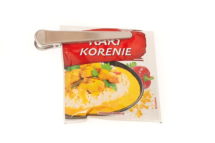 Kvalitný, odolný kovový štipec, ktorý môžete použiť napríklad na zatvorenie otvoreného vrecka s potravinami.