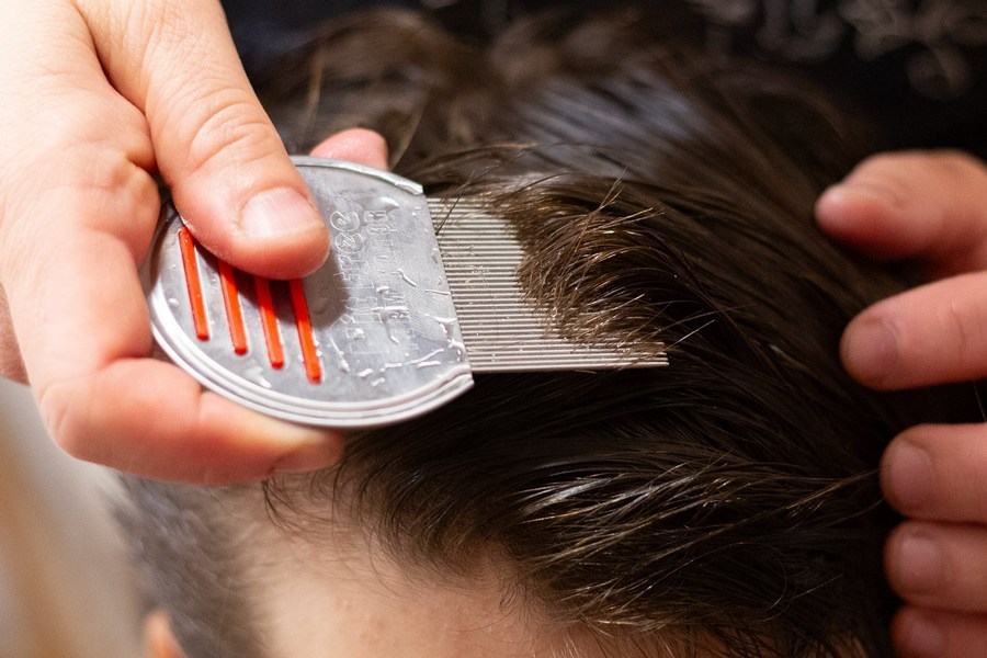 Vlasy rozdeľte do 4-6 častí a jednotlivé časti poriadne prečešte od korienkov ku končekom, aby ste vyčesali všetky hnidy a vši. Po každom prečesaní skontrolujte vizuálne hrebeň. Ak sa tam nachádza voš, hrebeň opláchnite. Ak iba hnidy, tie netreba riešiť - stačí opláchnuť po dočesaní pomocou kefky.