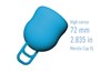 Objem kalíška je 50ml (priemer kalíška je 46mm), výška 50mm – objem, ktorý pri daných rozmeroch dokáže pohltiť vaic krvi ako dva vysokoabsorbčné tampóny.