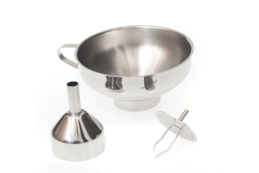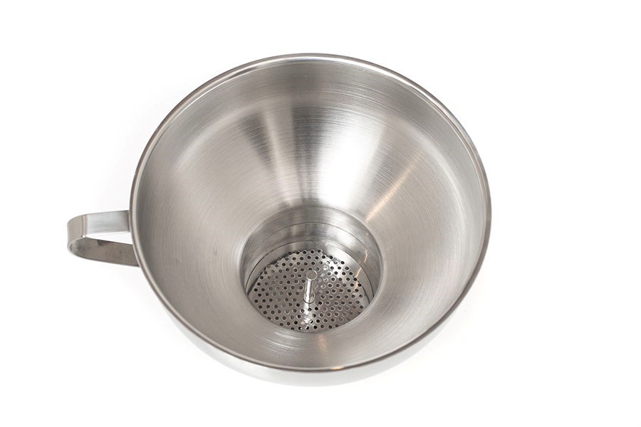 Sada obsahuje veľký lievik s priemerom 14 cm a kompatibilný nasadzovací minilievik s priemerom 6 cm s jemným 1 mm nerezovým sitkom.