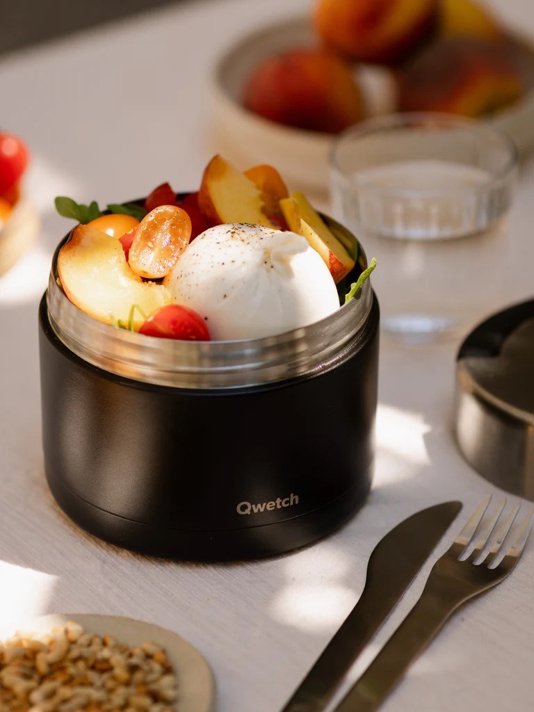 Praktický, ľahký a utesnený termoobedár od značky Qwetch, vyrobený z nehrdzavejúcej ocele. Jedlo udrží teplé až 5 hodín alebo chladné až 7 hodín. Okrúhly nerezový obedár je praktický a ľahko sa udržiava čistý.