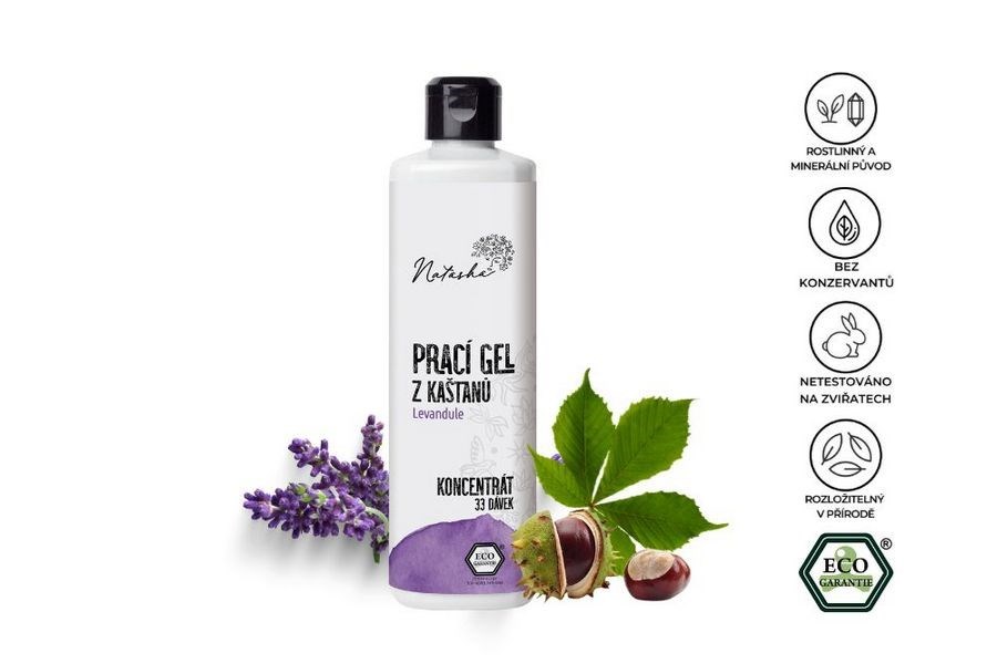 Vysoko koncentrovaný a zároveň veľmi jemný a šetrný ekologický gél z extraktu pagaštanu konského. Ideálny nielen pre bežnú farebnú bielizeň, ale aj pre jemné pranie, detské oblečenie a látkové plienky.