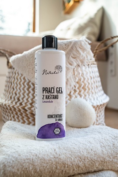 Prací gél je prevoňaný 100% organickým esenciálnym olejom z levandule.