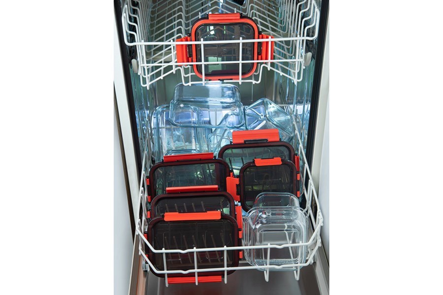 Sklenená nádoba na uchovávanie alebo prenos potravín. Vrchnák dobre tesní vďaka zatváraniu na klipy. Dóza je vhodná do chladničky, mrazničky, mikrovlnky, rúry a aj do umývačky.