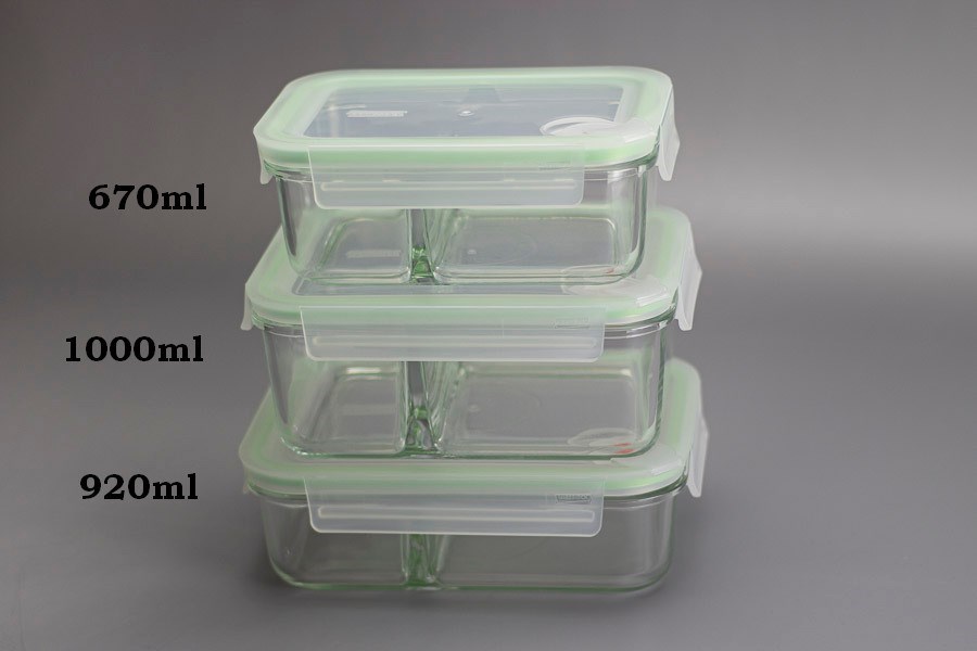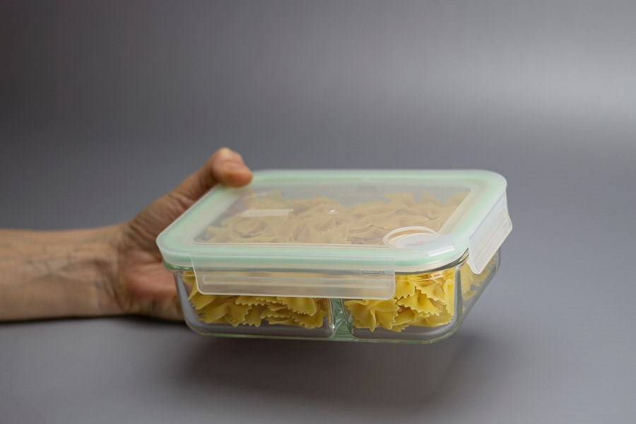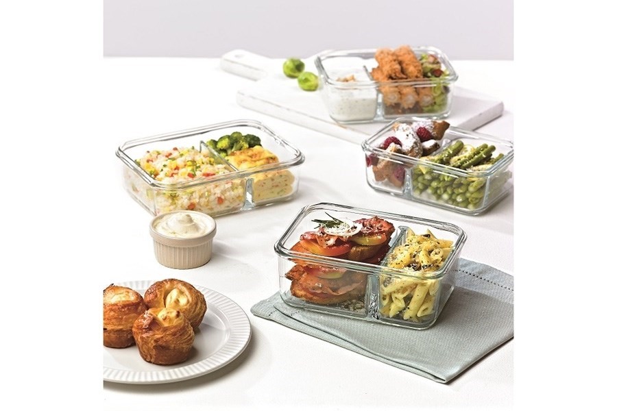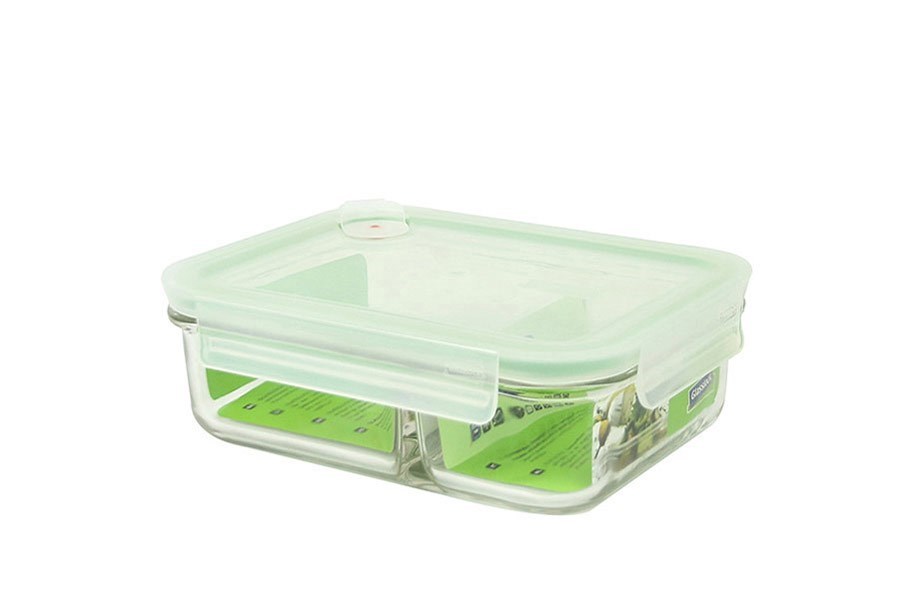 Vzduchotesná, vodotesná, zdravotne nezávadná duo dóza z tvrdeného skla od značky Glasslock. Sklenená nádoba je dobrá na prenos, skladovanie či uchovávanie potravín v chladničke i v mrazničke. V strede je sklenená prepážka na oddelenie rôznych druhov jedla.