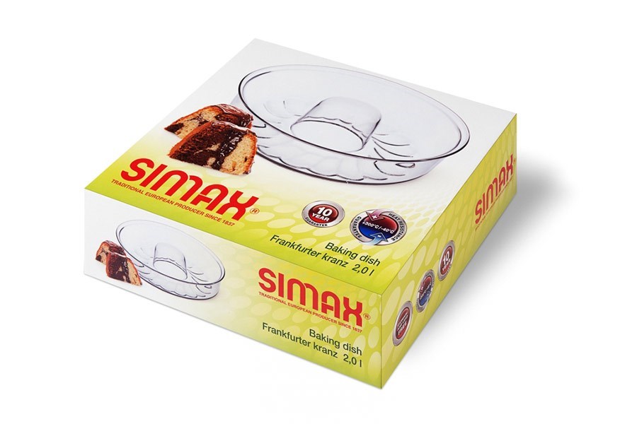 Sklenená forma Simax na frankfurtský kruh a iné typy sladkých dezertov. Sklo pozvoľna uvoľňuje teplo a cesto sa tak ideálne prepečie. Priemer je 26cm.