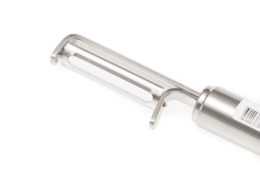 Nerezová škrabka na zeleninu s ostrou a pohyblivou pozdĺžnou čepeľou. Na oškrabávanie rôznych druhov zeleniny.