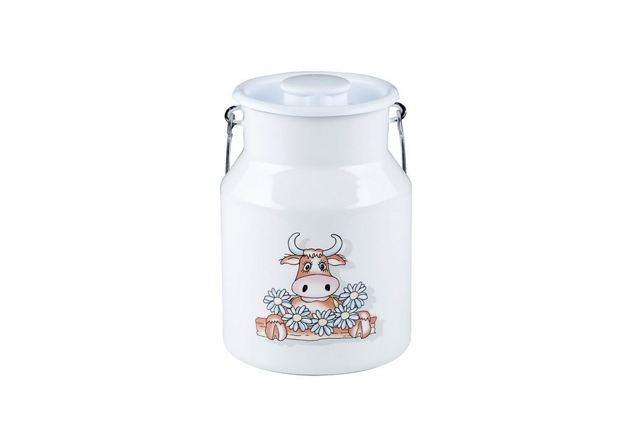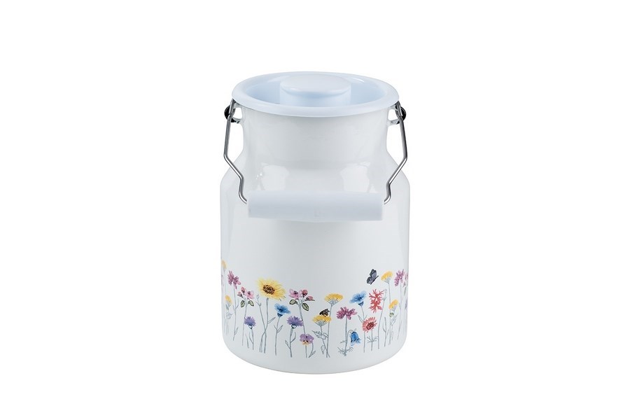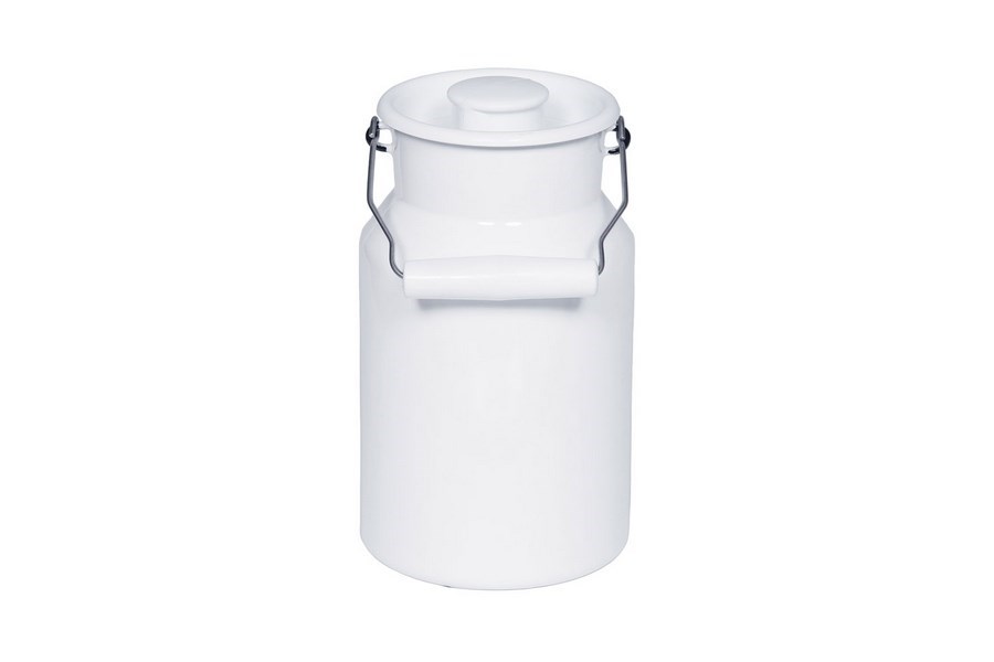 Smaltovaná kanvička na skladovanie a prepravu (nielen) mlieka. Vrchnák a rúčka sú z plastu.