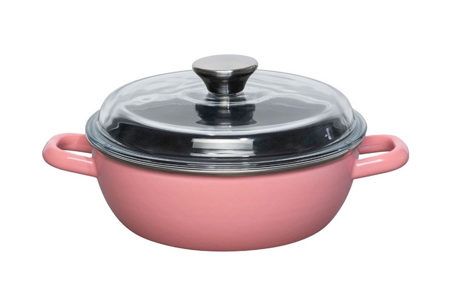 Smaltovaná panvica so sklenenou pokrievkou - 20 cm - rôzne farby