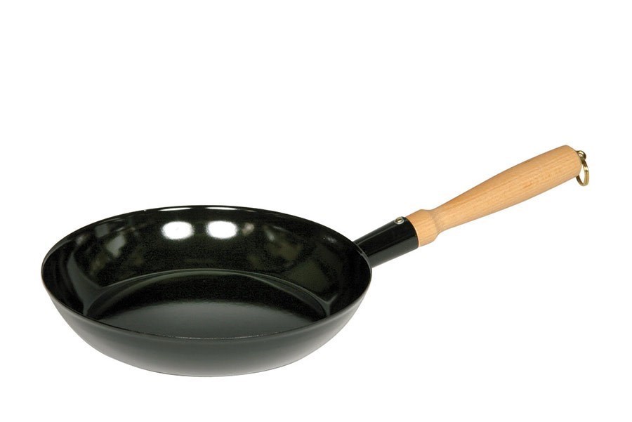Smaltovaná panvica s drevenou rúčkou - 23 cm - čierna - 2. trieda