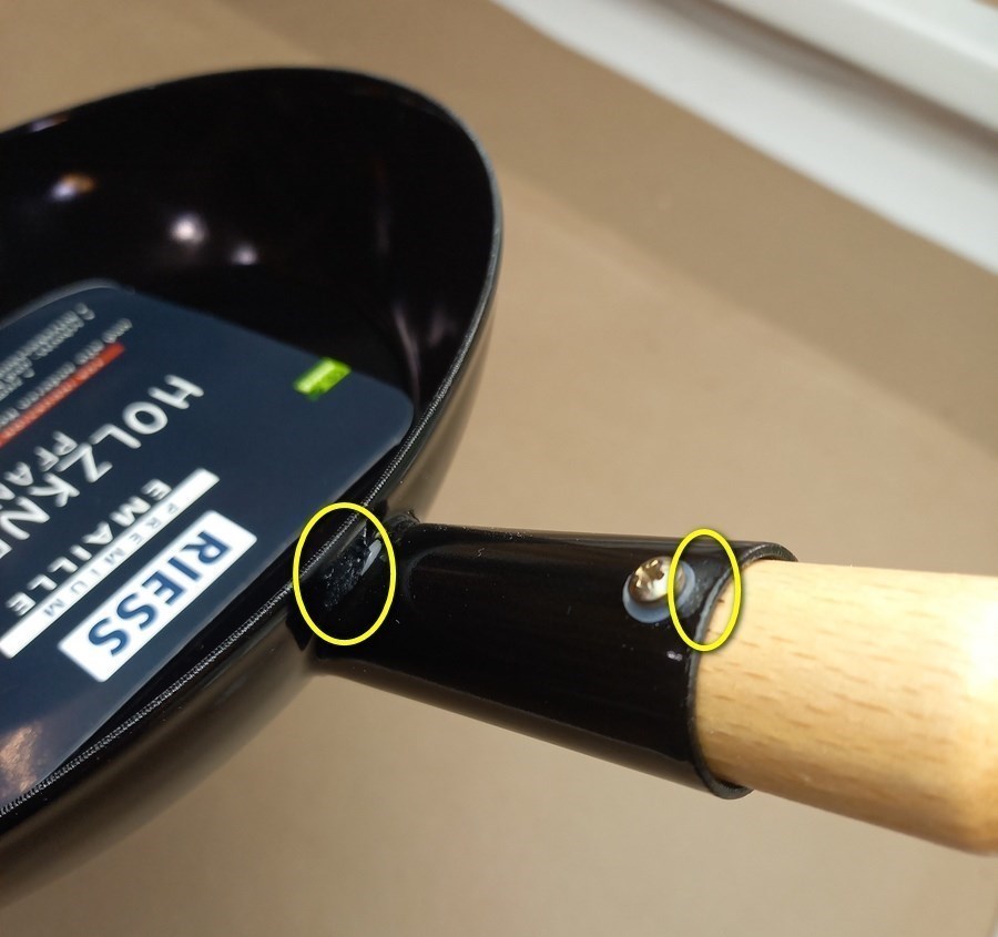 Panvica je zaradená v 2. triede z dôvodu odlúpenia smaltu z vonkajšej strany (nemá to vplyv na funkčnosť - viď posledné dve foto).