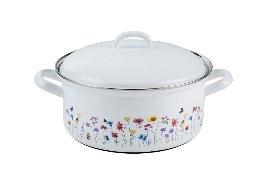 Klasický smaltovaný hrniec s pokrievkou. Vhodný na všetky typy varičov, aj do rúry - odporúčame používať chňapky, pretože držadlá aj pokrievka môžu páliť.