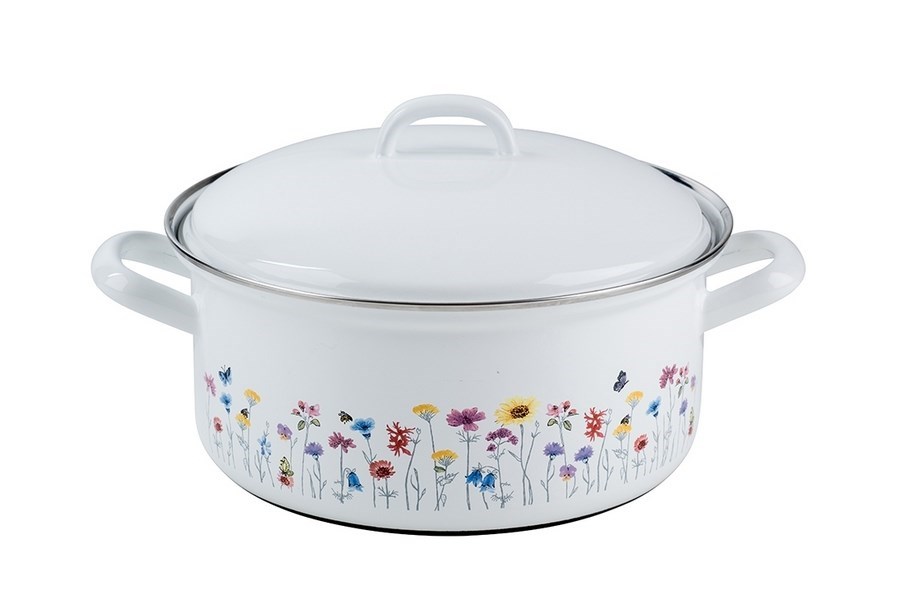 Klasický smaltovaný hrniec s pokrievkou. Vhodný na všetky typy varičov, aj do rúry - odporúčame používať chňapky, pretože držadlá aj pokrievka môžu páliť.