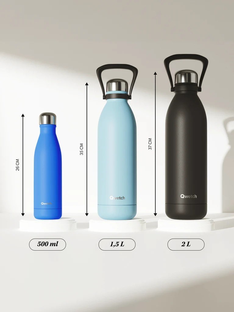 Zdravá fľaša na pitie - antikórová termoska Qwetch - 1500ml - z nerezovej ocele 18/8, ktorá je bezpečná pre styk s potravinami - nehrdzavejúca, odolná voči preliačeniu, nenaberá pachy a farby tekutín.