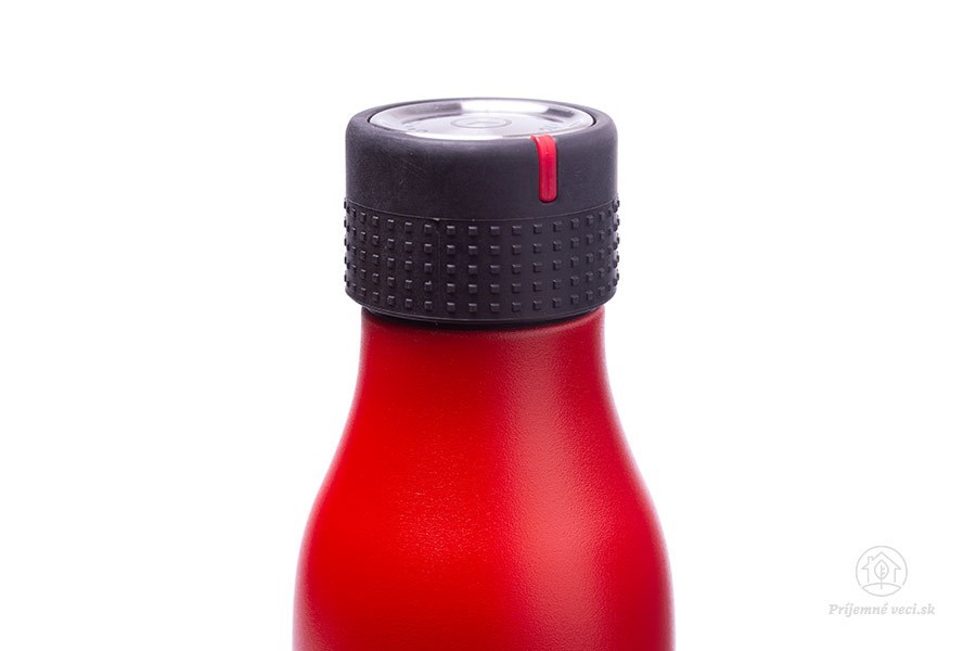 Termofľaša udrží nápoj teplý 12h a studený 24h vďaka odolnej dvojitej stene z nerezu, ktorá zabezpečuje perfektnú izoláciu. Na vrchnáčiku je naznačený čas – stlačíte ho a otočíte na hodinu, kedy ste si fľašu naplnili. Silikónové tesnenie dokonale bráni pretečeniu.