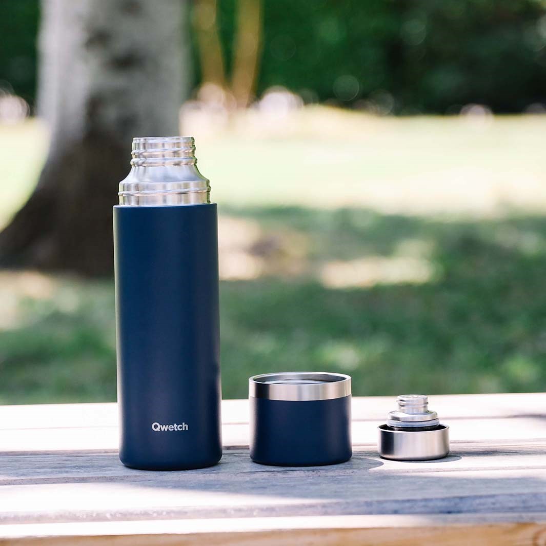 Nerezová termofľaša vyrobená z recyklovanej nehrdzavejúcej ocele od značky Qwetch. Termoska má objem 750ml a súčasťou je aj pohár na nápoj. Táto nerezová fľaša udrží nápoj studený 24h a teplý 12h. Vrchnák je pri styku s nápojom tiež nerezový.